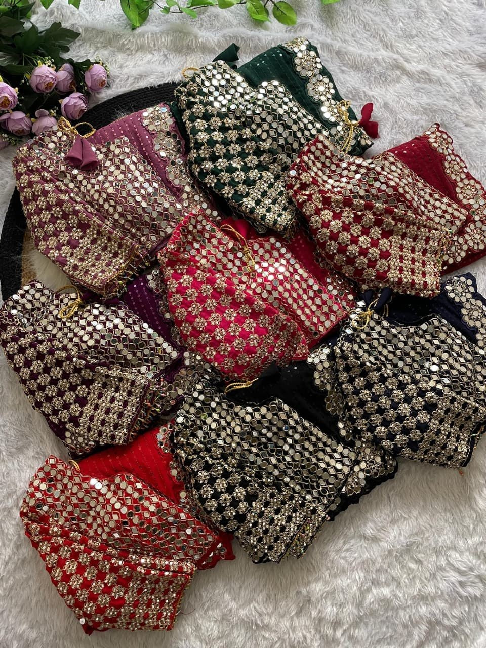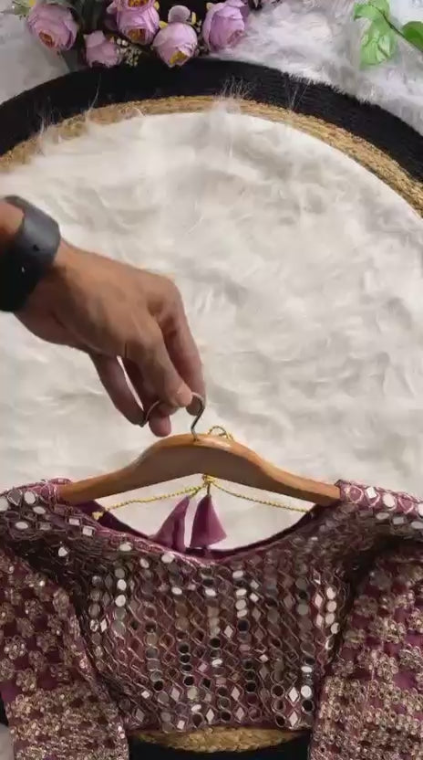 • Blouse Work: Heavy Embroidery with Mirror Work (Front, Back & Sleeves)